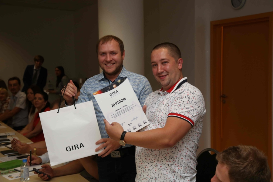 По итогам работы за год почетными переходящими кубками были награждены московская компания «Реал Групп» и компания «БИС» из Ростова-на-Дону. Всем участникам митинга были вручены подарки и памятные дипломы. Г-н Щмитц, в своем кратком выступлении на деловой конференции поблагодарил всех за инициативу и успешную работу по продвижению бренда Gira в России, пожелав партнерам ООО «ГИЛЭНД» дальнейшего вдохновения и энергии.