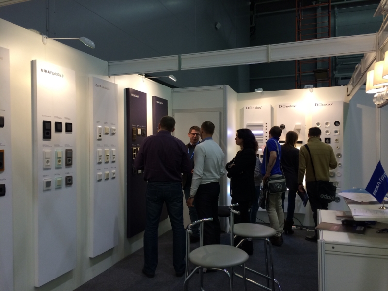 Продукцию Gira представляла наша дилерская компания «Реал Групп». В числе демонстрируемого оборудования сразу несколько дизайн-коллекций розеток и выключателей, различных функциональных вставок Gira. Интерес к современным технологиям и качественным материалам в регионах России неуклонно растет, что снова подтвердила выставка в целом и, в частности, стенд Gira. Многообразие вариантов дизайна и материалов изделий, предлагаемых Gira, их соответствие высоким эстетическим и экологическим стандартам дает специалистам по интерьеру и архитекторам возможность уйти от шаблонов, создавать новые оригинальные проектные решения.