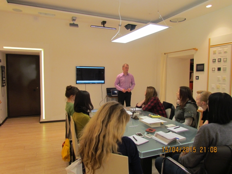 Семинар, проведенный 15 апреля Антоном Гусятниковым, главой представительства «ГИЛЭНД» в Санкт-Петербурге, для студентов и только что закончивших обучение выпускников этого вуза, был организован в шоу-руме компании-дилера СЭТКОМ. Тема — обзор дизайн-серий Gira, рассказ о новинках серии Esprit — линейках рамок Linileum-Multiplex, Алюминий-светлое золото и Сталь, об уникальных материалах и технологиях Gira, примененных для создания этих изделий, о возможностях такого интересного для профессиональных дизайнеров инструмента, как дизайн-конфигуратор Gira.