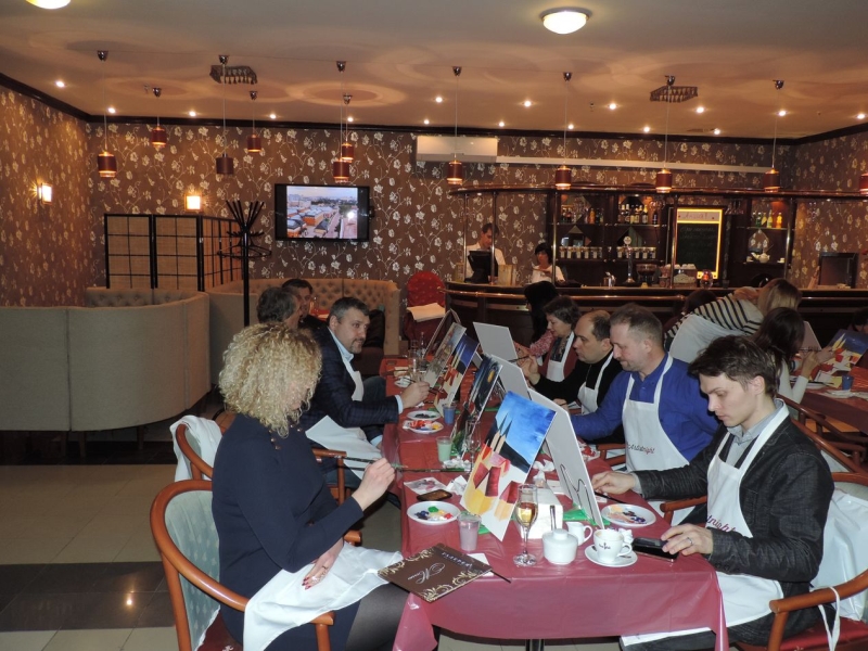Свой «город золотой» есть у каждого из нас; кто-то в нем уже был, а кто-то лишь мечтает его увидеть. Но воплотить мечту ведь можно по-разному — можно ее, например, нарисовать. И вот кафе «Галерея», что в Никольском пассаже в самом центре Москвы, стало настоящей арт-площадкой! Здесь 17 февраля рисовали свои разноцветные города гости творческой вечеринки — дизайнеры, сотрудничающие с нашим дилером, компанией «Реал Груп». Провела мастер-класс профессиональная художница, график и иллюстратор Виктория.