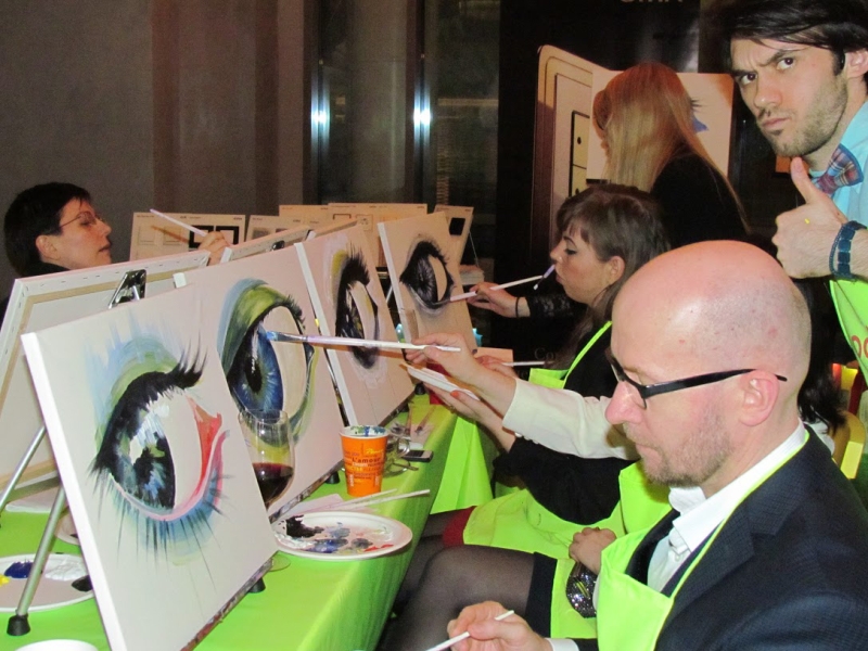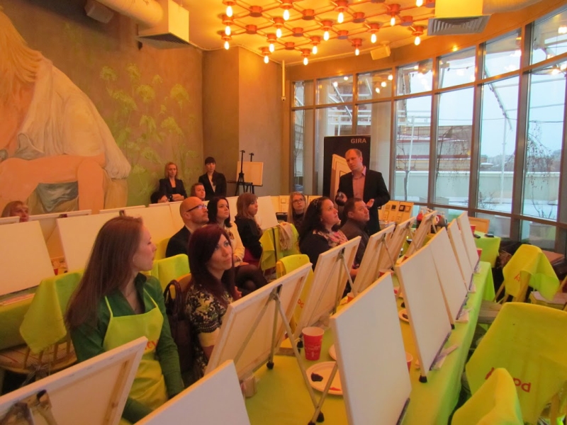 Да, смятение весеннее наблюдалось — вчера, 14 апреля, в весеннем Санкт-Петербурге валил снег… Но на что он мог повлиять? Вот и не повлиял. И вовсе не помешал собраться людям из «Тесли» вместе с сотрудничающими с ними дизайнерами и архитекторами, чтобы посмотреть и послушать презентацию по новинкам Gira на Light + Building 2016. Местом встречи назначили ресторан «Фуд-парк» в центре города, что прямо напротив Петропавловской крепости, в КЦ «Великан Парк». Сюда пришли гости вечера, чтобы увидеться с коллегами, поговорить, обсудить профессиональные темы, а затем дать выход творческим силам, рисуя… загадочный взгляд. Каждый писал свой шедевр, своё неповторимое видение взгляда — взгляда всевидящего прекрасного ока. Индивидуальный подход к этому непростому занятию обеспечивал профессиональный художник, создавая заодно для всех и отличное настроение. Техническая информация и рисование — для архитекторов и дизайнеров понятия неразрывные!