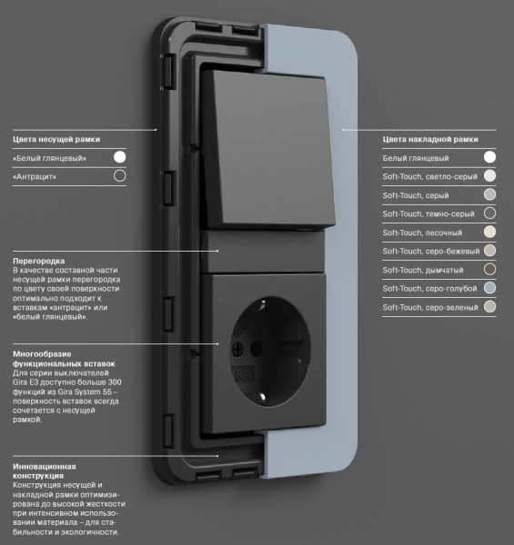 - Конфигуратор дизайна Gira работает в режиме онлайн и содержит цены на выбранные комплектные устройства и функции: www.designconfigurator.gira.com