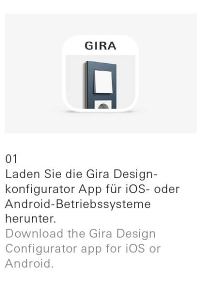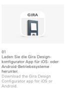 Конфигуратор дизайна Gira можно использовать онлайн или загрузить в форме бесплатного приложения для мобильных устройств с ОС iOS или Android.