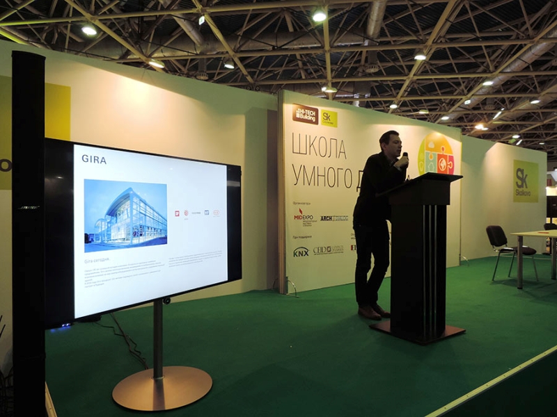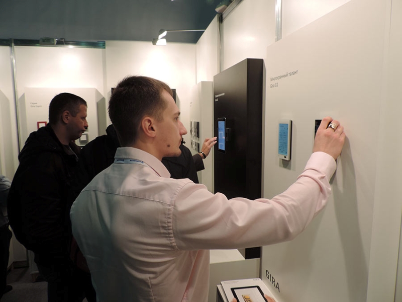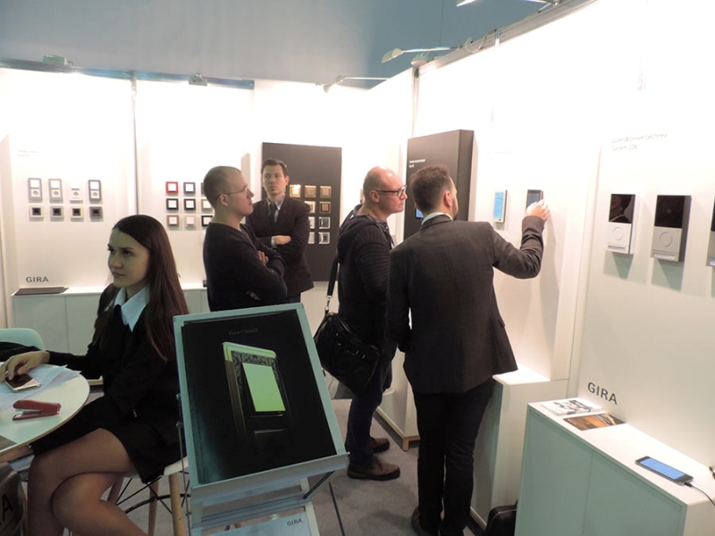 Компания Gira представила свои передовые разработки в Павильоне № 2. Гости нашего уютного стенда смогли ознакомиться с самыми популярными изделиями: от признанных во всем мире серий Esprit, ClassiX и E3 до обновленной серии E2 с возможностью плоского монтажа. Среди новинок также была представлена новая модульная домофонная система Gira System 106 — электромонтажная система из металла, доступная в трех вариантах исполнения: нержавеющая сталь, алюминий и белая лакировка. Технические специалисты нашей компании наглядно продемонстрировали возможности сервера визуализации X1 и многофункционального центра управления зданием G1. Включение и выключение света, изменение яркости, поднятие и опускание жалюзи, регулирование температуры в помещениях и многие другие функции можно настроить под себя всего одним движением руки.