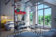 Полюбившаяся дизайнерами и завоевавшая многочисленные награды серия Gira E3 стала завершающим аккордом в уютной атмосфере пронизанной светом мансарде для молодых героев.