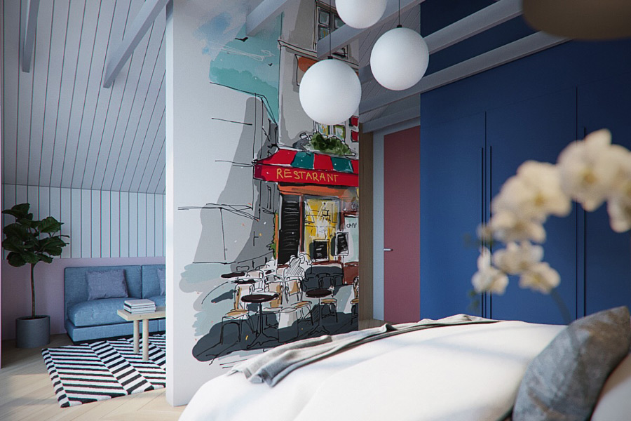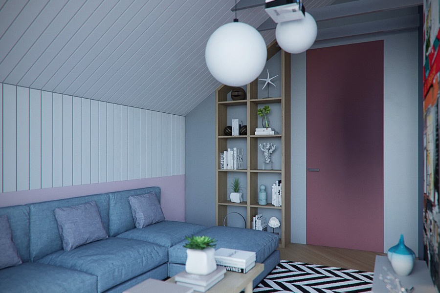 Полюбившаяся дизайнерами и завоевавшая многочисленные награды серия Gira E3 стала завершающим аккордом в уютной атмосфере пронизанной светом мансарде для молодых героев.