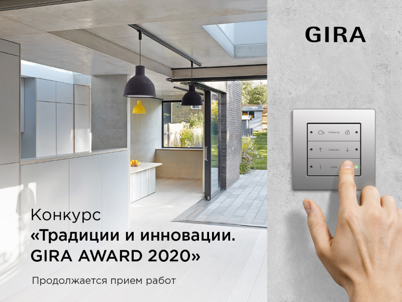 Участвуйте в конкурсе «Традиции и инновации. Gira Award 2020» с призами от 50 000 до 150 000 рублей! Конкурсные номинации: «Лучший проект общественного здания», «Лучшее интерьерное решение частного дома», «Лучший проект по автоматизации».
