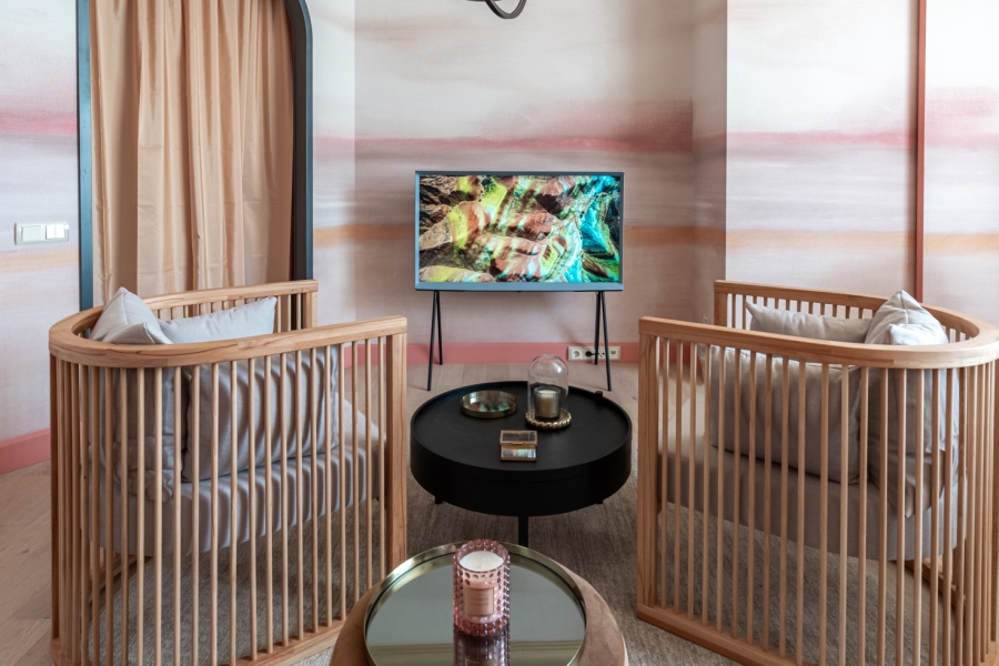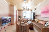13 июня 2020 года по НТВ вышла передача с переделкой гостиной комнаты для сестер. Получилось женственное пространство с арками и золотой лепниной. Для ремонта были выбраны теплые цвета.