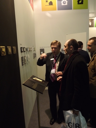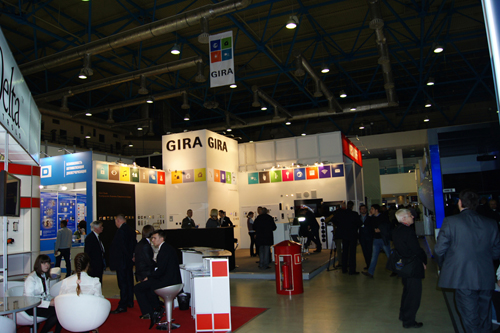 Gira – бессменный боец этого интеллектуального сражения разработчиков новейших технологий и оборудования. На стенде компании были представлены несколько дизайн-серий розеток и выключателей - Gira ClassiX, Event Clear, а также HomeServer 3, панели управления Gira Control Client 9 и 19, домофонная система, энергометеостанция, продемонстрированы принципы системы управления оборудованием через iPod Touch и iPad. Эта разработка пользовалась огромным интересом на протяжении всей выставки.