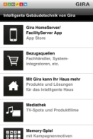 Пока, правда, приложение существует только на немецком языке. Для тех, кто хорошо знаком с ним, сообщаем, что стоит обратить особое внимание на демонстрацию материала о HomeServer – это самая интересная часть приложения. Его можно найти в разделе Gira HomeServer/FacilityServer App (First Topic). Начинать следует с раздела «Ansicht HomeServer App starten». Всем желаем успеха!