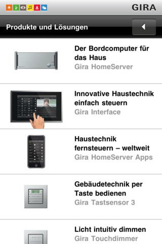 Пока, правда, приложение существует только на немецком языке. Для тех, кто хорошо знаком с ним, сообщаем, что стоит обратить особое внимание на демонстрацию материала о HomeServer – это самая интересная часть приложения. Его можно найти в разделе Gira HomeServer/FacilityServer App (First Topic). Начинать следует с раздела «Ansicht HomeServer App starten». Всем желаем успеха!