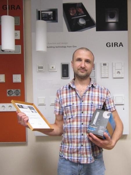 В номинации «За умение создавать дружескую атмосферу для заказчика при продвижении продукции GIRA» победил архитектор-дизайнер Василий Остроухов. Его проект отразил всё разнообразие функциональных возможностей и дизайна электроустановки от Gira. Наряду с памятным дипломом ему был вручен специальный приз - жесткий диск Gira.