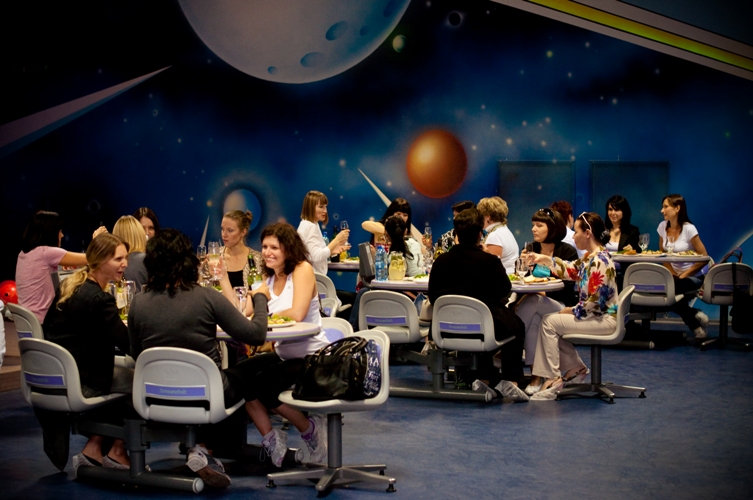 Гости торжества отправились в путешествие… вокруг света. Правда, им не потребовалось для этого 80 дней, как героям Жюля Верна. Воображаемый корабль сумел в течение одного вечера побывать в самых разных частях света и странах, а участники праздника почувствовали себя единой командой, совместно преодолевая «испытания» — игры и конкурсы, где нужно было проявить и широкую эрудицию, и находчивость, и быстроту реакции, и креативное мышление.