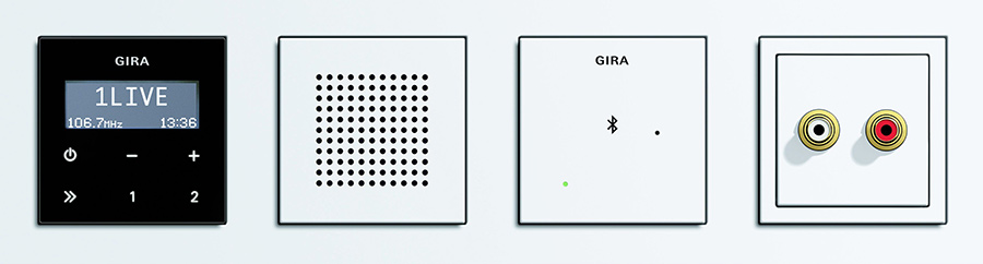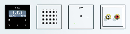 Докстанция Gira. Устройство позволяет подключать внешние музыкальные источники к радиоприемнику Gira c функцией RDS или к музыкальному центру. При этом возможна беспроводная передача музыки с помощью Bluetooth. Благодаря трем сменным насадкам докстанция Gira поможет зарядить различные смартфоны и MP3-плееры.