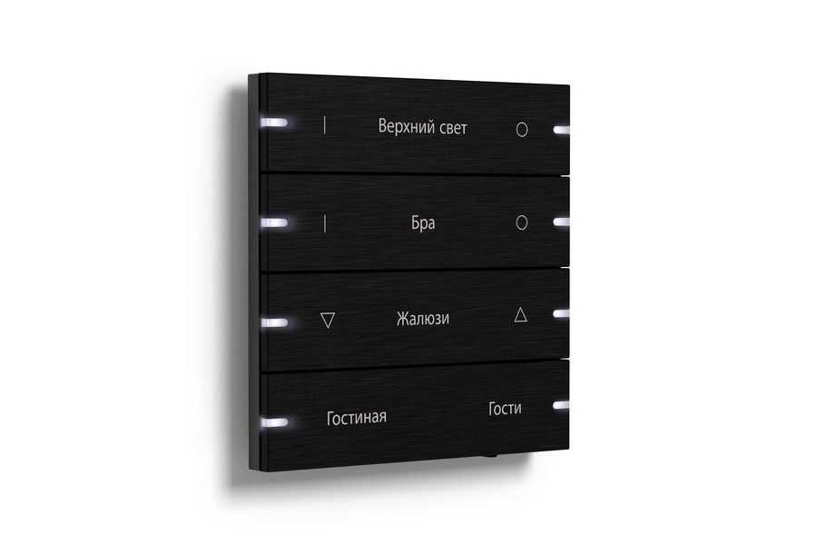 Элементы управления Gira KNX обеспечивают простое и удобное пользование всеми функциями умного дома. Устройство управление должно быть интуитивно понятным, надёжным и, главное, стильным! Новые сенсорные выключатели Gira 4 это уникальный дизайн и самые качественные материалы: черное стекло, белое стекло, алюминий, черный алюминий и нержавеющая сталь. И это лишь затравка, к концу года мы предложим вам новые цвета и материалы!