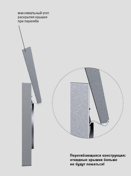 Разработка новой конструкции механизма откидной крышки еще раз доказывает, что для Gira мелочей не существует , когда речь заходит о надежности и удобстве применения продукции! Примечательно, что на международной выставке Light&Building 2008 Во Франкфурте данную разработку представила в производственной программе только компания Gira!