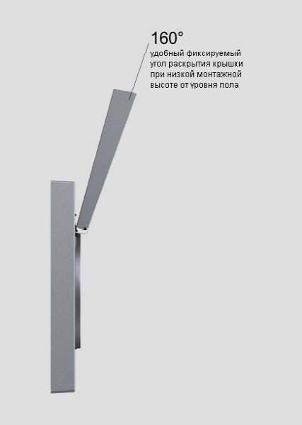 "Новинка" от Gira устанавливает новые стандарты комфорта. Теперь откидная крышка штепсельной розетки SCHUKO может фиксироваться при открытии в трех положениях, соответствующих углам в 110°, 160° и 180°, что необходимо для обеспечения надлежащих условий инсталляции на различных уровнях монтажа. Новая конструкция крепления откидной крышки, основанная на использовании специальных пружинных пластин, обеспечивает уникальную возможность (в случае необходимости) открытия крышки без фиксации на угол более 180 градусов!