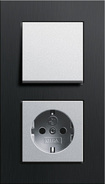 Клавишный выключатель и розетка с заземляющими контактами, Gira Esprit,рамка - черный матовый алюминий / вставки - «под алюминий»