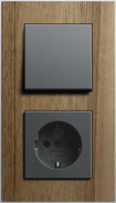 Gira Esprit, рамка - алюминия в комбинации со шпоном из орехового дерева / вставки - антрацит